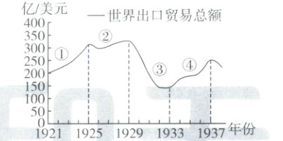 13. 下面为“1921—1937 年世界出口贸易总额变动曲线图”。其中,第④段的情况反映了此时期(