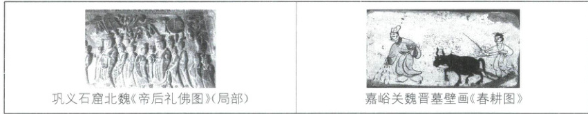 (1)表现:北魏时,北方少数民族统治者穿着汉服;(1分)事件:北魏孝文帝改革。(2分)