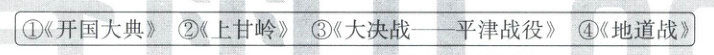 11.D 解析本题考查对史事发生时间的掌握。结合所学知识可知,④《地道战》反映的是抗日战争时期(1931—1945年)根据地军民展开人民游击战争,进行反“扫荡”,创作了地道战等战法;③《大决战——平津战役》反映的是发生于1948年11月至1949年初的平津战役,处于人民解放战争中的战略决战阶段;①《开国大典》反映的是1949年10月1日中华人民共和国成立这一重大历史事件;②《上甘岭》以抗美援朝战争(1950—1953年)中的上甘岭战役为背景创作。因此,按照历史事件发生的先后顺序,这些电影的排列应为④③①②。故选D项。