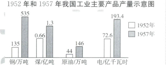14.B 解析本题考查“一五”计划对工业发展的影响。根据材料“1952年和1957年”并结合所学知识可知,我国第一个五年计划从1953年开始执行,其基本任务是集中主要力量发展重工业,相应地发展交通运输业、轻工业等。到1957年底,第一个五年计划绝大部分指标大幅度超额完成,我国开始改变工业落后的面貌,向社会主义工业化迈进,钢等主要工业产品产量较1952年大幅增长,故B项正确;土地改革(1950—1952年)废除地主阶级封建剥削的土地所有制,实行农民的土地所有制,核心是变革农业生产关系,与工业产品产量增长无关,排除A项;改革开放开始于1978年,与材料时间不符,排除C项;我国于2001年加入世界贸易组织,与材料时间不符,排除D项。