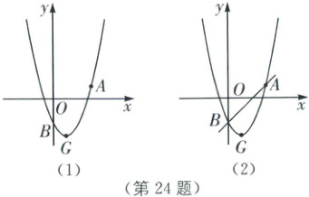 24.(本小题满分 12 分)二次函数$y = x^{2}+bx + c$的图象经过$A(3,1),B(0,-2)$两点,顶点为$G$.