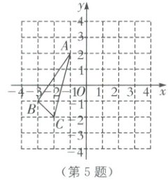 5. 如图,在平面直角坐标系中,点 A,B,C 都在格点上,将$\triangle ABC$关于 y 轴的对称图形绕原点 O 旋转$180^{\circ}$,得到$\triangle A_{1}B_{1}C_{1}$,则点 A 的对应点$A_{1}$的坐标是(