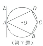 7. 如图,四边形$ABCD$是$\odot O$的内接四边形,$\angle ADC=90^{\circ}$,$DC=BC$,直线$EA$与$\odot O$相切于点$A$.若$\angle BCD=128^{\circ}$,则$\angle DAE$的度数为(
