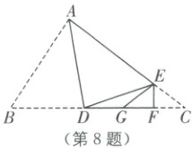 8. 如图,在三角形纸片$ABC$中,$\angle B=57^{\circ}$,$\angle C=38^{\circ}$,将纸片沿着过点$A$的直线折叠,使点$B$落在$AC$边上的点$E$处,折痕$AD$交$BC$于点$D$;再将纸片沿着过点$E$的直线折叠,使点$C$落在$BC$边上的点$G$处,折痕$EF$交$BC$于点$F$.下列结论成立的是(