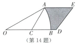 14. 如图,在扇形$AOB$中,$\angle AOB=30^{\circ}$,$OA=2\sqrt{3}$,点$C$在$OB$上,且$OC=AC$.延长$CB$到$D$,使$CD=CA$.以$CA,CD$为邻边作平行四边形$ACDE$,则图中阴影部分的面积为