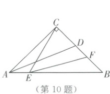 10. 如图,在$\triangle ABC$中,$\angle ACB=90^{\circ}$,$AC=BC$,$AD$是角平分线. 点 $E$ 从点 $A$ 出发,沿 $AB$ 方向向点 $B$ 运动,连接 $CE$,点 $F$ 在 $BC$ 上,且$\angle CEF=45^{\circ}$. 设$AE=x$,$FD=y$,若 $y$ 关于 $x$ 的函数图象过点$(0,2-\sqrt{2})$,则该图象最低点的坐标为(