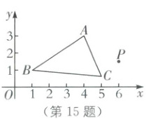 15. 如图,在平面直角坐标系中,点 $P$ 的坐标为$(6,\frac{3}{2})$,$\triangle ABC$的顶点 $A$ 的坐标为$(4,3)$. 以点 $P$ 为位似中心作$\triangle A_{1}B_{1}C_{1}$与$\triangle ABC$位似,相似比为 2,且与$\triangle ABC$位于点 $P$ 同侧;以点 $P$ 为位似中心作$\triangle A_{2}B_{2}C_{2}$与$\triangle A_{1}B_{1}C_{1}$位似,相似比为 2,且与$\triangle A_{1}B_{1}C_{1}$位于点 $P$同侧……按照以上规律作图,点$A_{3}$的坐标为