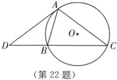 22. (本小题满分 10 分)如图,$\triangle ABC$内接于$\odot O$,$\angle ABC=2\angle C$,点 $D$ 在线段 $CB$ 的延长线上,且 $BD=AB$,连接 $AD$.