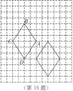 16. (本小题满分10分)如图,已知菱形$ABCD$的顶点在方格纸的格点上,其中$A,B,C$的坐标分别为$(0,1),(-2,4),(-4,1)$. 该菱形经过中心对称得到它右侧的菱形(顶点均在格点上).