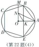 [迁移拓展]如图(4),作圆内接正五边形:①作$\odot O$的两条互相垂直的半径$OA$和$OM$,取$OM$的中点$N$,连接$AN$;②作$\angle ONA$的平分线,交$OA$于点$K$;③过点$K$作$OA$的垂线,交$\odot O$于点$B,E$,连接$AB,AE$;④截取$BC=BA,CD=CB$,连接$BC,CD,DE$. 五边形$ABCDE$即为所求.