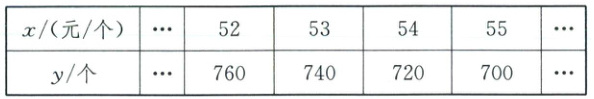 把(52,760),(53,740)分别代入,得$\begin{cases} 760=52k+b,\\ 740=53k+b,\end{cases}$解得$\begin{cases} k=-20,\\ b=1800,\end{cases}$