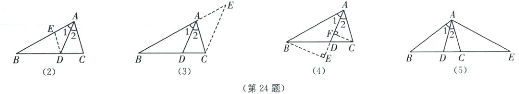 (3)[拓展应用]如图(5),在$\triangle ABC$中,AD 平分$\angle BAC$交 BC 于点 D,E 为 BC 延长线上一点,$AE=DE$.