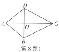 8. 我们把两组邻边分别相等的四边形称之为“筝形”. 如图,在四边形$ABCD$中,对角线$AC$,$BD$交于点$O$.下列条件中,不能判断四边形$ABCD$是筝形的是(