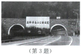 3. 如图,秦岭钟南山公路隧道是我国自主设计、施工的我国最长的双洞单向高速公路隧道,一度被誉为“天下第一隧”.隧道线形为直线,建成后通行里程大大缩短.下面能解释路程缩短原因的是(