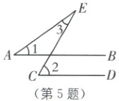 5. 已知:如图,$AB // CD$,$\angle 1 = 36°$,$\angle 2 = 60°$,则$\angle 3$的度数是(