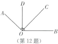 12. 如图,$\angle AOC = \angle BOD = 90°$,$\angle COD = 44°$,则$\angle AOB =$