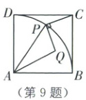 9. 如图,$P$是以正方形$ABCD$的顶点$A$为圆心,$AB$为半径的弧$BD$上的点,连接$AP$,$CP$,将线段$CP$绕点$P$顺时针旋转$90°$后得到线段$PQ$,连接$AQ$.若$AB = 1$,则$\triangle APQ$的最大面积是(