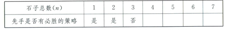 | 石子总数$(n)$ | 4 | 5 | 6 | 7 |