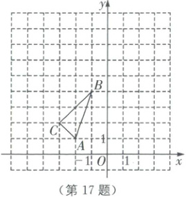 17. (本小题满分 8 分)如图,在平面直角坐标系中,$\triangle ABC$的三个顶点坐标分别为$A(-2,1)$,$B(-1,4)$,$C(-3,2)$.