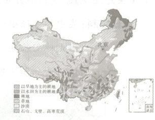 2025 年 6 月 25 日是第三十五个全国土地日,主题是“节约集约用地 严守耕地红线”。下图为中国主要土地利用类型的分布图。据此完成 28~29 题。