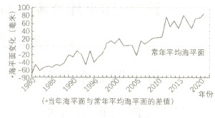 30.(2024 上·山东德州)全球变暖会导致冰川消融、海平面上升,不仅危害自然生态系统的平衡,还会影响人类生存。图为 1980~2021 年中国沿海海平面变化示意图。为合理开发和保护海洋,我们应当 (