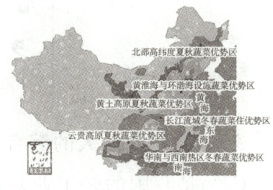 优越的自然环境使我国成为蔬菜种植的理想国度。根据不同区域的气候特点,我国已经建立了六大蔬菜生产优势区域。读我国六大蔬菜生产优势区域示意图,完成下列小题。
