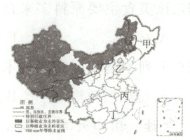 )A. 甲处粮食作物主要为小麦,糖料作物主要为甘蔗
