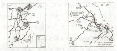 读我国四大工业基地分布图和上海宝钢原料来源示意图,完成17~18题。