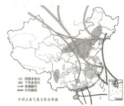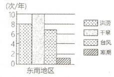 4.我国是世界上自然灾害种类最多的国家。据图可知,一年之内在我国东南地区发生频次最高的气象灾害是 (
