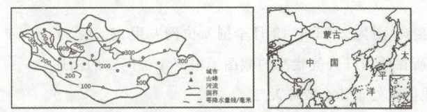(1)读图归纳蒙古国年降水量特点:年降水量多在