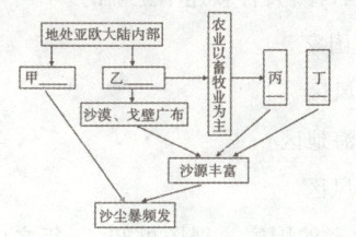 材料二:沙尘暴是指强风将地面尘沙吹起,使空气很混浊的一种天气现象。它的形成受自然和人类活动的共同影响。自然因素包括大风、降水少及丰富的沙源。人类活动的影响是指人类在发展经济过程中破坏植被,导致沙源增加。蒙古国面积约 157 万平方千米,人口约 320 万,支柱产业是采矿业和牧业,是世界上沙尘暴多发的国家。