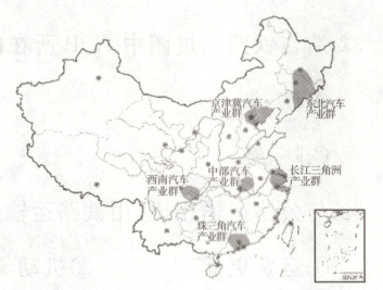 2023年9月13日,冯德莱恩宣布欧盟委员会将对中国电动汽车启动反补贴调查。这也从侧面反映出我国汽车产业发展迅速,新能源电动汽车进入产业化快速发展阶段,图为我国汽车产业分布示意图,据此完成下面小题。