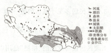 西藏自治区地处我国西南边陲,平均海拔 4 000 米以上,其西北部荒漠广布。青稞是西藏重要的粮食作物。下图为西藏自治区地图。根据图文资料,完成 20~21 题。