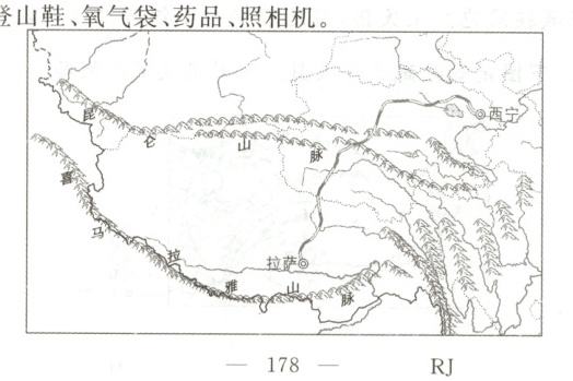 ,形成独特的高寒气候。(3)高原地区太阳辐射强烈,为此他们还需准备的物品有