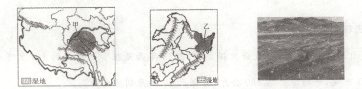 。(5)图中甲、乙两阴影地区共同存在的生态环境问题是湿地面积锐减,解决乙地区此环境问题的措施是停止开荒,建立