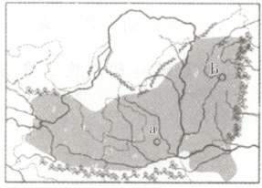 D.图中 a 是行政中心太原,b 是行政中心西安
