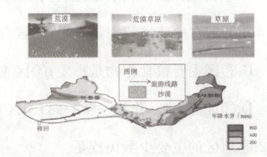 从锡林郭勒经河西走廊、吐鲁番盆地到和田的旅游线路进行游览。 读图完成 21~23 题。