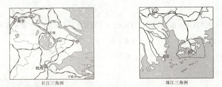 读长江三角洲和粤港澳地区示意图,回答下列问题。