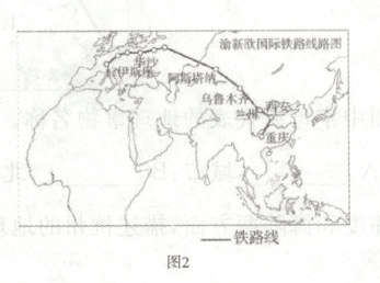 洲等地区的联系,为“一带一路”建设注入新的动力。(2)下列货物有可能出现在由杜伊斯堡返回的渝新欧国际班列上的是