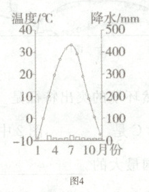 (4)结合图 4 吐鲁番气候资料图,说明吐鲁番瓜果品质优良的原因。(一点即可)