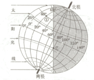 1.读地球自转“昼与夜”示意图,回答下列问题。