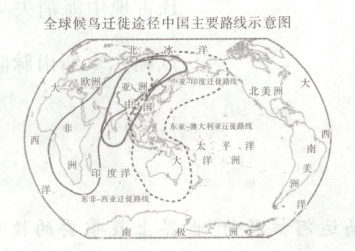 材料一:候鸟迁徙是一种有规律的动物季节性迁徙。在全球主要候鸟迁往路线中,有3条迁徙路线途经中国,其中经过东亚—澳大利亚迁徙路线的鸟类种群数量最多,也是鸟类面临威胁最大的路线。