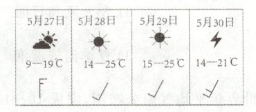 (2024·山东临沂·中考真题)下图为某地连续四天的天气预报图。据此完成下面小题。