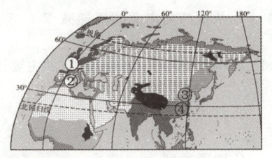 17.读世界局部气候类型图,图中序号表示的气候类型正确的是 (