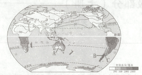 21.图中B地降水充沛,而C地降水稀少,主要的影响因素是 (