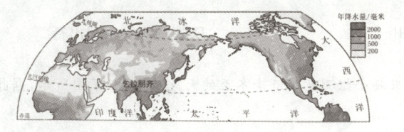 下图是北半球年降水量分布图。读图,完成下面小题。