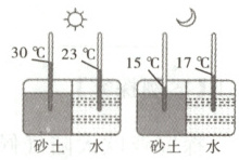 (2023·海南)下图示意“探究海陆温度变化的差异”模拟实验(砂土和水的起始温度等条件相同)。据此完成24~25题。