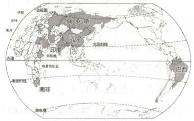 (2024·吉林长春·中考真题)2024年1月,伊朗、沙特阿拉伯等5国成为金砖国家,成员国数量增加到10个,金砖国家均为发展中国家。下图为金砖国家分布图。据此完成下面小题。