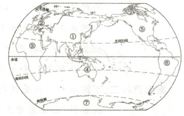 (填数字)。世界上纬度最高、跨经度最广的大洲是⑦