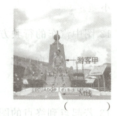 (2024·四川内江·中考真题)下图为厄瓜多尔方柱形赤道纪念碑。图中游客甲面向东方,双脚跨在 M 线两侧拍照,以示自己同时站在南北两个半球上。据此完成下面小题。